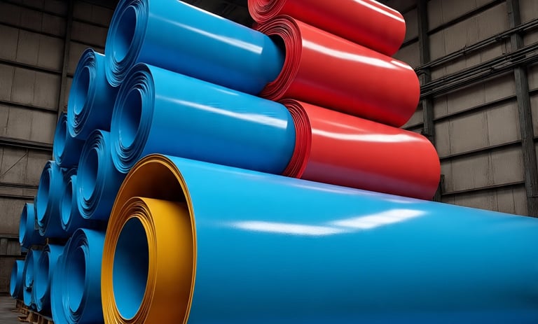 A selection of flat steel materials—including coils, sheets, slabs, and coated metals—used in construction, infrastructure, appliances, and industrial fabrication.